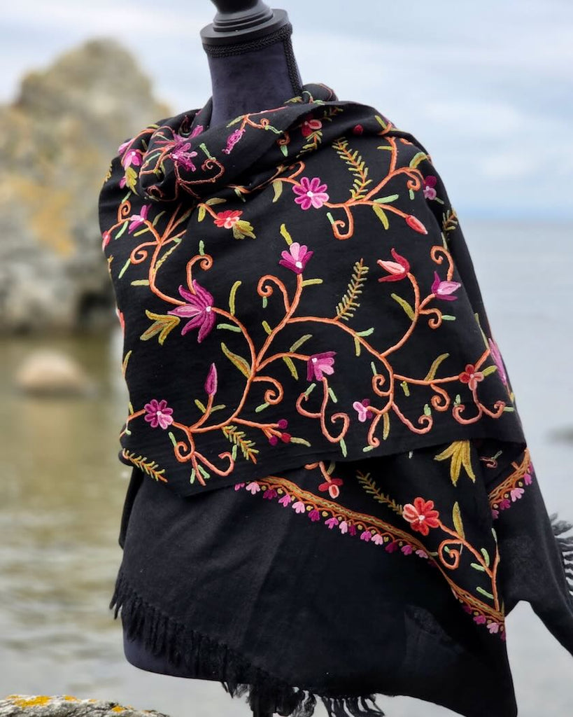 Scarfs, sjalar och halsdukar i många storlekar, kvalitéer, tjocklekar och färger. En del handvävda, andra maskinvävda, några med våra egna mönster, en del med tryckta mönster andra med vävda mönster och några med handmålade mönster - varianterna är många. Alla scarfs, sjalar och halsdukar är gjorda av någon av följande naturmaterial; ekologiskt vildsilke, mullbärssilke, cashmere, merino och fin ull.