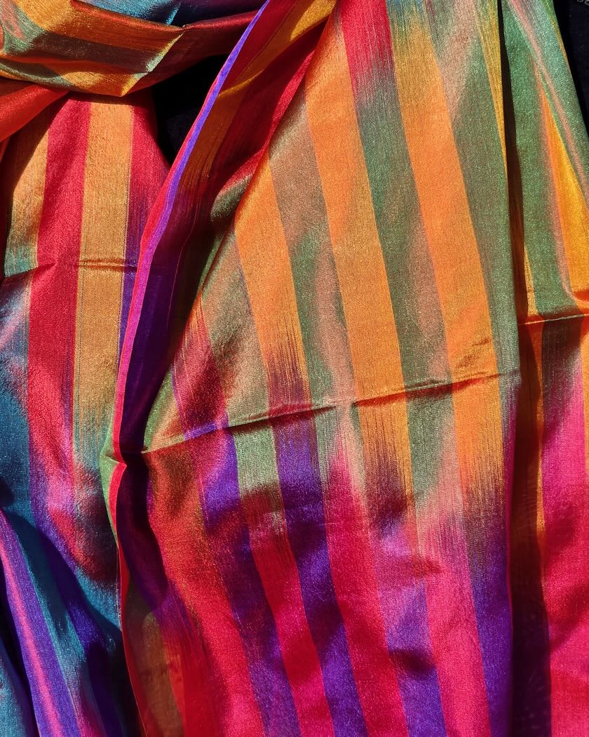Handvävd sidensjal ikat färgstark ränder 1