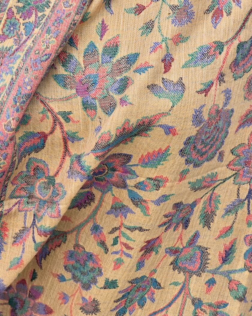 Cashmere and wool shawl Roses white
