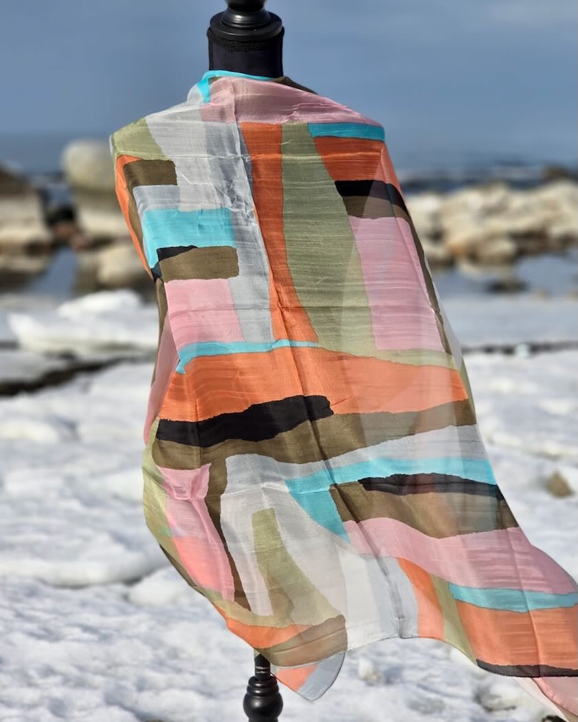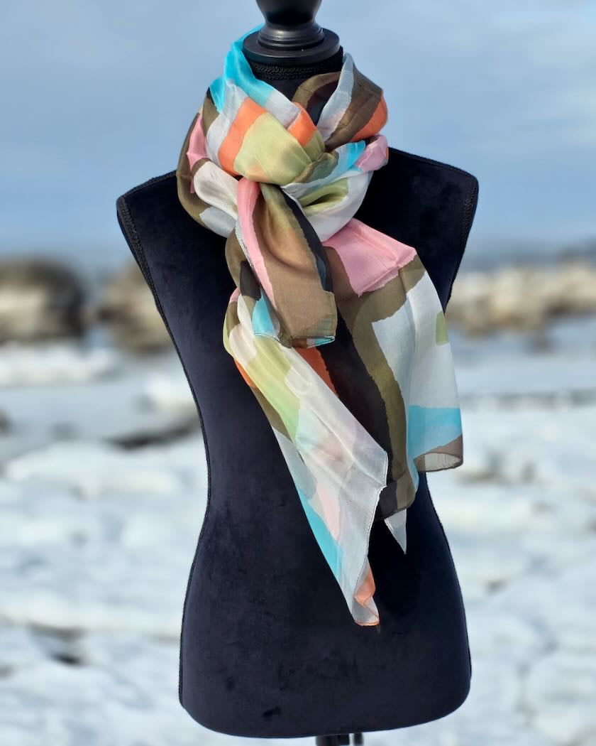 Elegant thin silk scarf deluxe in a generous size that is just as perfect an accessory for winter party attire as it is for summer beach parties; thin, light, and sheer shimmering.